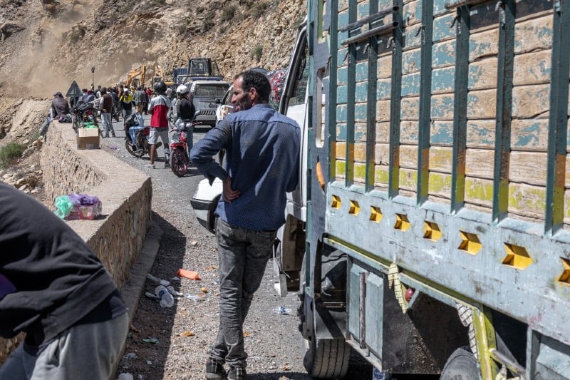وتعرف الطريق ذاتها في الوقت الحالي مرور عدد كبير من الشاحنات والحافلات وسيارات المتطوعين لإنقاذ ضحايا الزلزال؛ فيما يحذر السكان الشاحنات بمختلف أنواعها من “المرور بحمولة ثقيلة وسط المنحدر”.