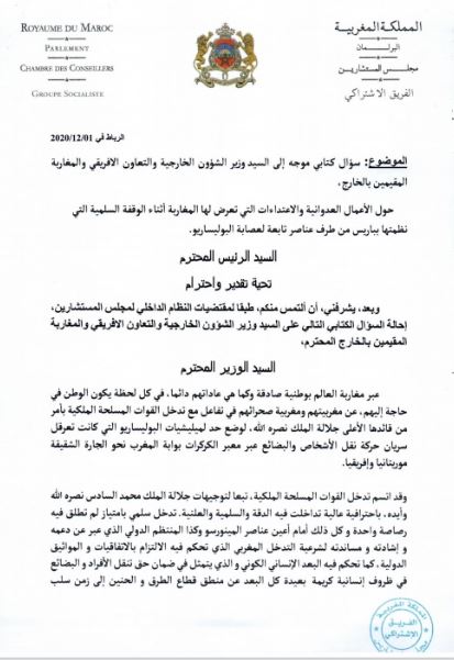 ساءل المستشار البرلماني عبد الوهاب بلفقيه في سؤال كتابي وزير الشؤون الخارجية والتعاون الإفريقي والمغاربة المقيمين بالخارج ناصر بوريطة، حول الأعمال العدوانية والاعتداءات التي تعرض لها أبناء الجالية المغربية بفرنسا من طرف عناصر تابعة للبوليساريو.
