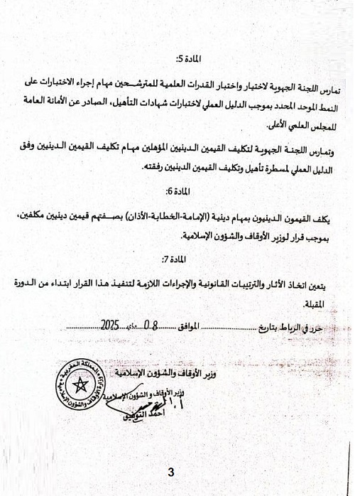 “قرار وزير الأوقاف والشؤون الإسلامية رقم 3.95 الصادر في 2025 في شأن مسطرة تأهيل وتكليف القيمين الدينين (أئمة-مؤذنون-خطباء).