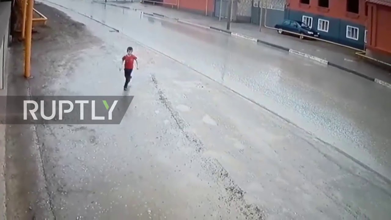 مشهد مؤثر.. شاهد نجاة طفل روسي من حادثة سير خطيرة