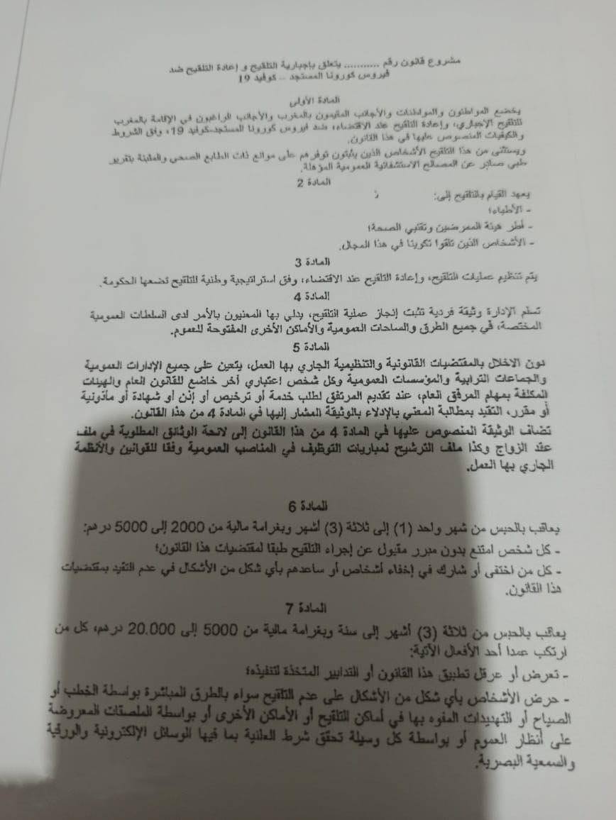 وأكد المصدر ذاته عدم وجود أي مشروع قانون حول موضوع اللقاح.