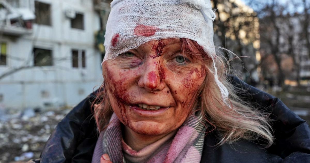 تحوّلت معلمةٌ تُدعى أولينا كوريلو إلى رمزٍ للمآسي الناتجة عن هجوم فلاديمير بوتين على أوكرانيا، برأسها المغطى بالضمادات ووجهها الملطخ بالدماء، إذ فرّت أولينا من مدينة تشوهيف شرقي منطقة خاركيف بصعوبةٍ بعد أن ضرب صاروخٌ روسي منزلها في يوم الخميس 24 فبراير، وقد شكرت “الملاك الحارس” على إنقاذ حياتها.