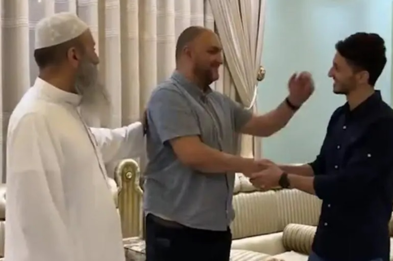 تداول ناشطون على مواقع التواصل تسجيلًا يوثق إشهار معلم بريطاني إسلامه على يد طالبه في الأردن.