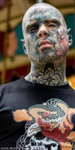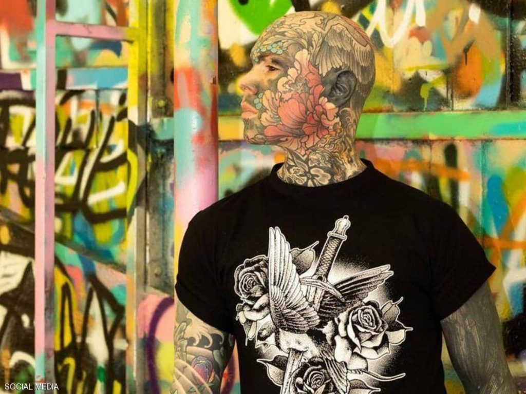 ويغطي الوشم كل جسد المعلم بنسبة 100 في المئة، ويوصف بأنه “الشخص الأكثر وشما في كل فرنسا”.