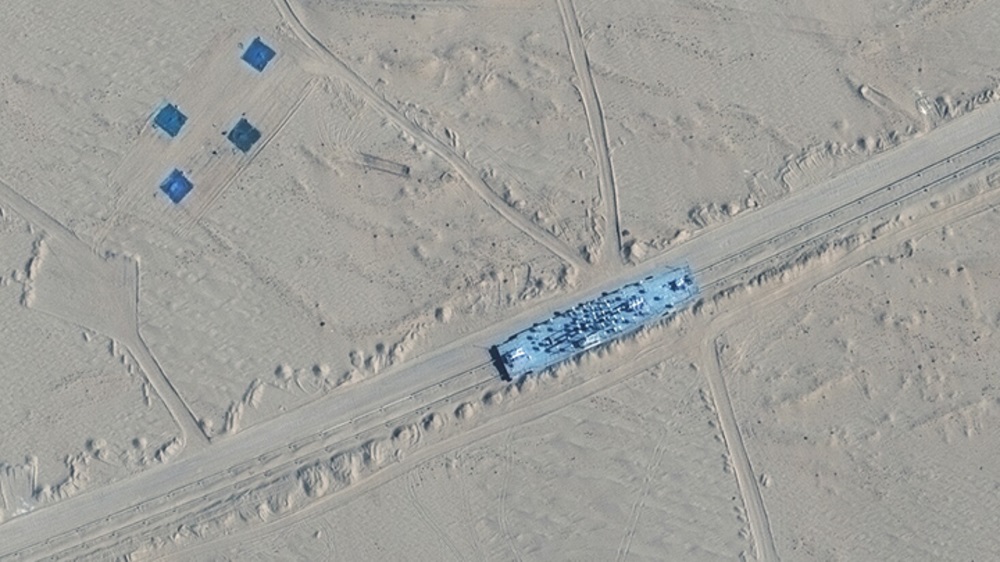 وأظهرت صور الأقمار الصناعية التابعة لشركة ماكسر، والتي التُقطت الأحد، الإطار الخارجي بالحجم الطبيعي، لحاملة طائرات أمريكية، ومدمّرتين على الأقل للصواريخ الموجهة من فئة “أرلي بيرك”، بُنيت فيما يبدو كمجمع تدريب جديد في صحراء تكلامكان.