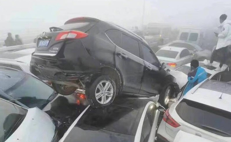 قتلى وجرحى وأم تحتض طفلها.. تصادم 200 سيارة بسبب الضباب في الصين (فيديو)