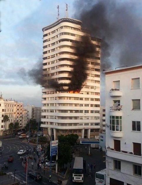 حريق مهول بعمارة شهيرة في الدار البيضاء تضم 17 طابقا
