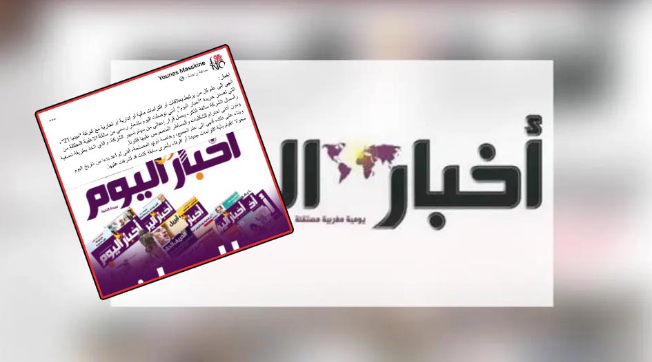 وقال يونس مسكين في تدوينة له على حائطه الأزرق دبجها ب’’إخبار’’: ’’أنهي إلى علم كل من يرتبط بعلاقات أو التزامات مالية أو إدارية أو تجارية مع شركة “ميديا 21″، التي تصدر جريدة “أخبار اليوم”, أنني توصلت اليوم بإشعار رسمي من مالكة الاغلبية المطلقة من رأسمال الشركة سالفة الذكر، يحمل قرار إعفائي من مهام تسيير الشرك، والذي اتخذ بطريقة تعسفية ودون أدنى احترام للشكليات والمساطر المنصوص عليها قانونا.