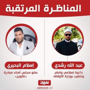 أعلنت منابر إعلامية مصرية عن إجراء مناظرة مرتقبة بين الداعية الإسلامي عبد الله رشدي، إمام وخطيب مصري، وإسلام البحيري، أحد مؤسسي مركز “تكوين” الحداثوي.