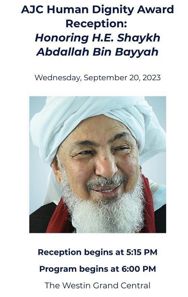 حيث منحت اللجنة اليهودية الأمريكية (AJC)، بن بية جائزة “الكرامة الإنسانية” تقديرا لما أسمته بـ”المساهماته البارزة في المعرفة والعمل، ولتعزيز رؤية مجتمع عالمي مشترك والتعاون بين الأديان”، وفق ما جاء في موقع اللجنة.