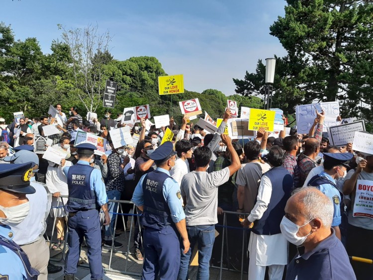 نظم أبناء الجالية المسلمة في اليابان وقفة أمام السفارة الهندية في العاصمة طوكيو عقب صلاة الجمعة، احتجاجا على التصريحات المسيئة للرسول الكريم ﷺ.