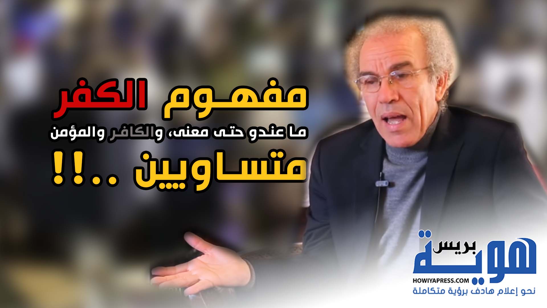 لأن في الدولة الحديثة مفهوم الكفر أو الكافر ما بقاش؛ ما عندو حتى معنى؛ لأن الدولة الحديثة قائمة على القوانين الوضعية وهاذيك القوانين لا الدستور ولا القانون الجنائي مافيهش شيتمييز بين المؤمن وغير المؤمن، ولهاذا مفهوم الكافر بمعنى أنه إنسان سيء مبقاش اليوم، المؤمن وغير المؤمن متساويين اليوم في الواجبات ديال المواطنة والدولة عاطياهم كلهم “لاكارط ناسيونال” إلى امشيتي الإدارات ما كيسولوكش على العقيدة ديالك. إذن معناه الناس اللي كيستعملوا الكفر والتكفير ناس غراب على العصر ديالنا كيعيشوا في الماضي، خصهم يديروا مجهود باش يدخلوا معانا في العصر ديالنا. وإلاّ غيبقاو على الهامش، والعمل اللي كيديروه في التكفير هو عمل يؤذي ويسيء إلى غيرهم. لأنهم كاينتاقموا من الدولة الحديثة، لأنهم ما قدروش يهدموها باش يرجعونا عود تاني لمساوئ الدولة الدينية“.