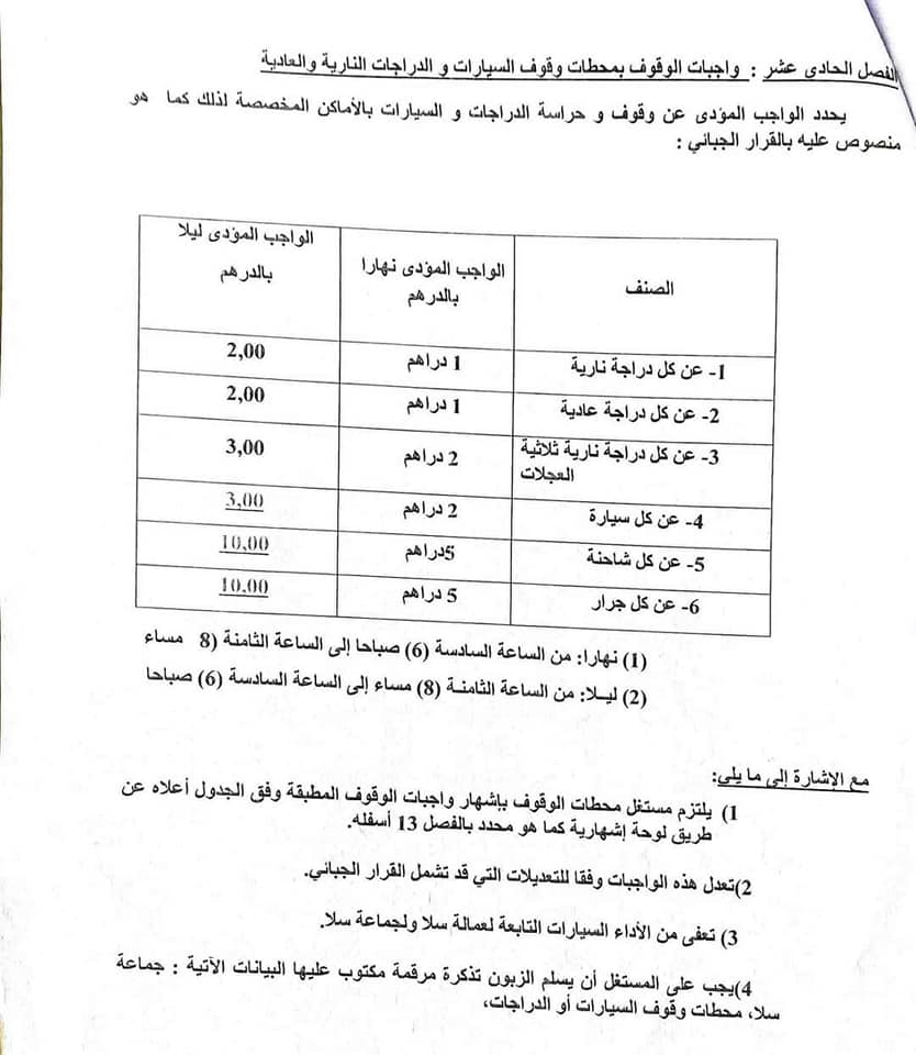 وأضاف أن هذا القرار الجبائي يحدد ثمن وقوف السيارات نهارا في 2 دراهم ..