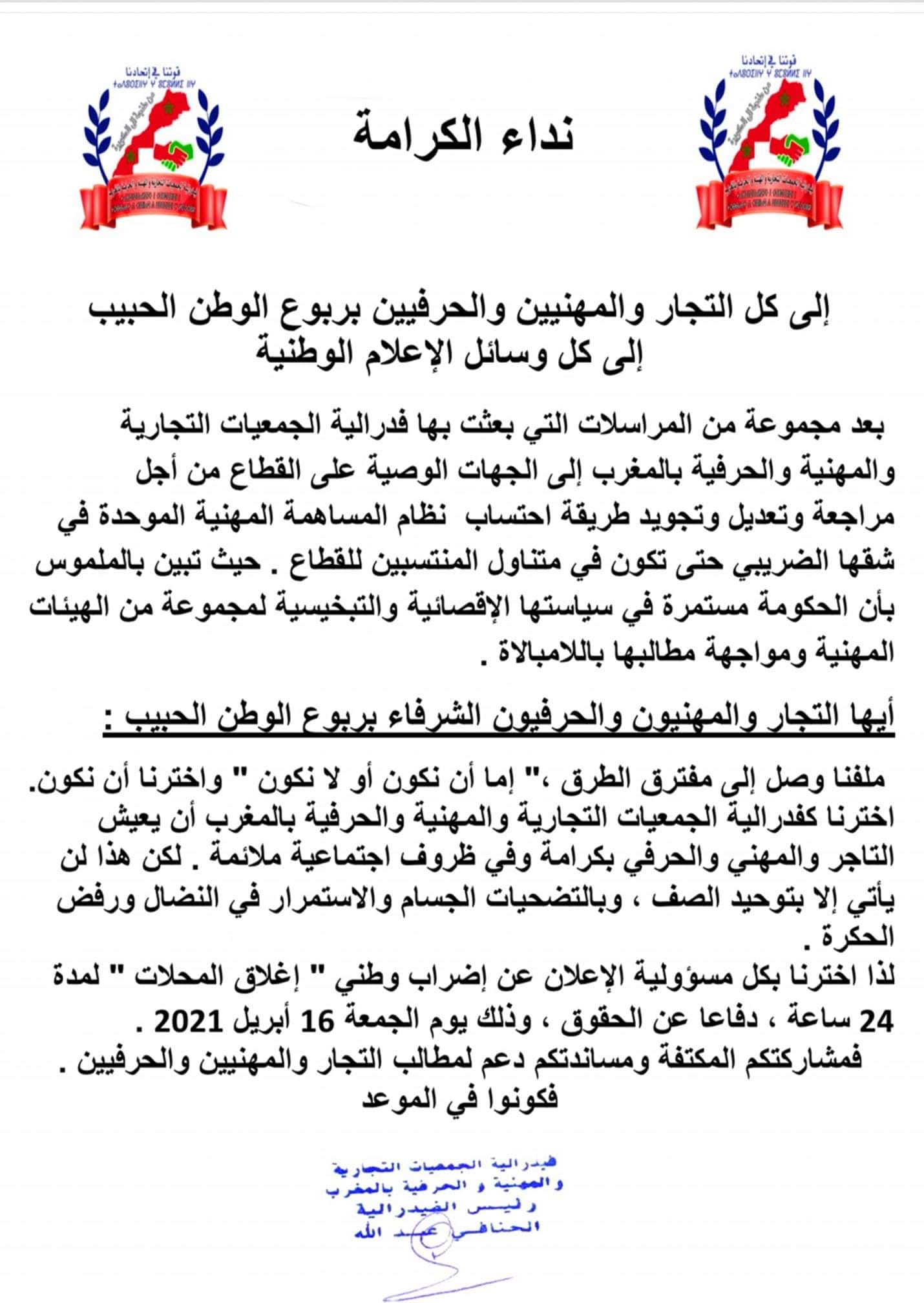 نداء الكرامة.. التجار يخوضون إضرابا وطنيا يوم الجمعة القادم