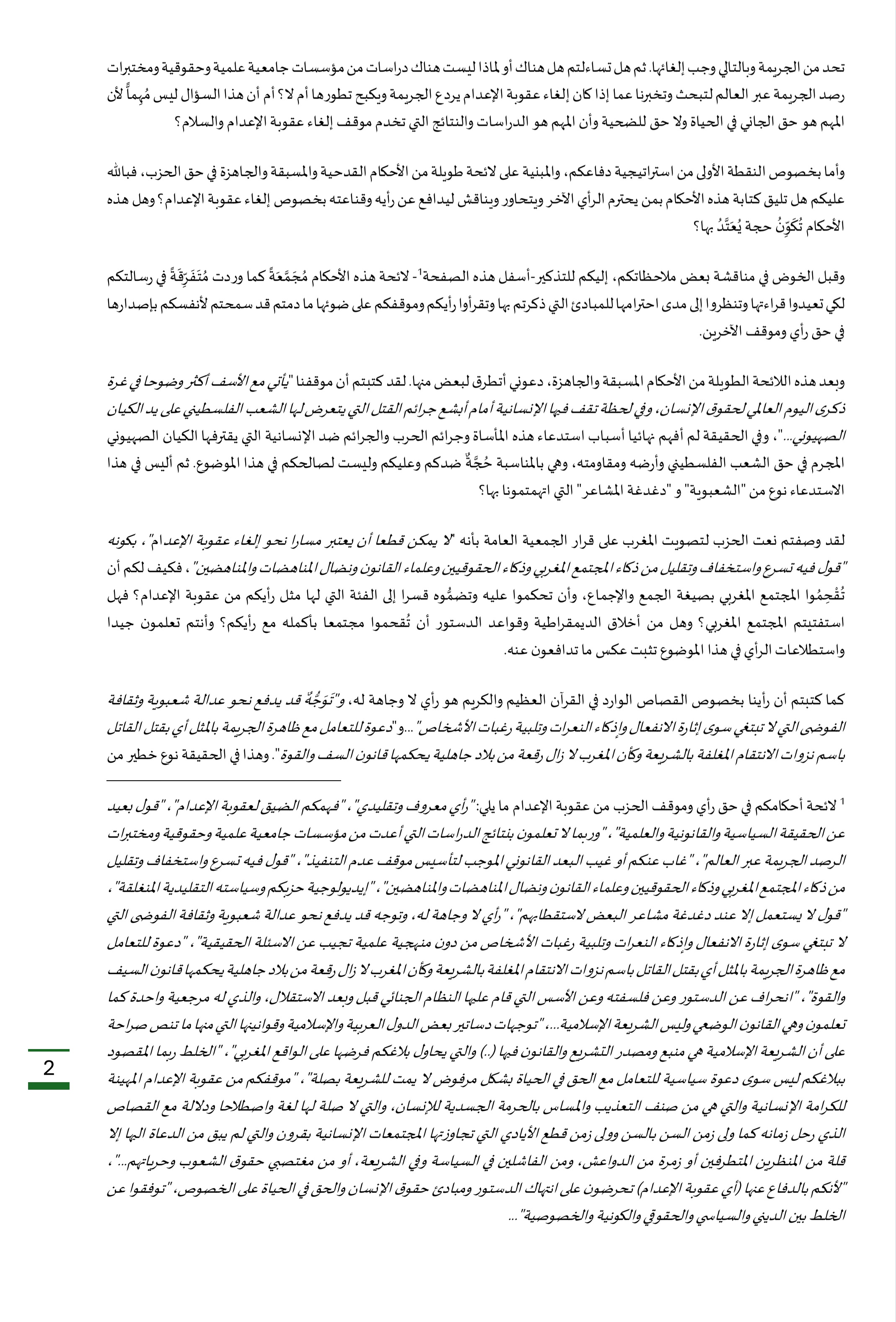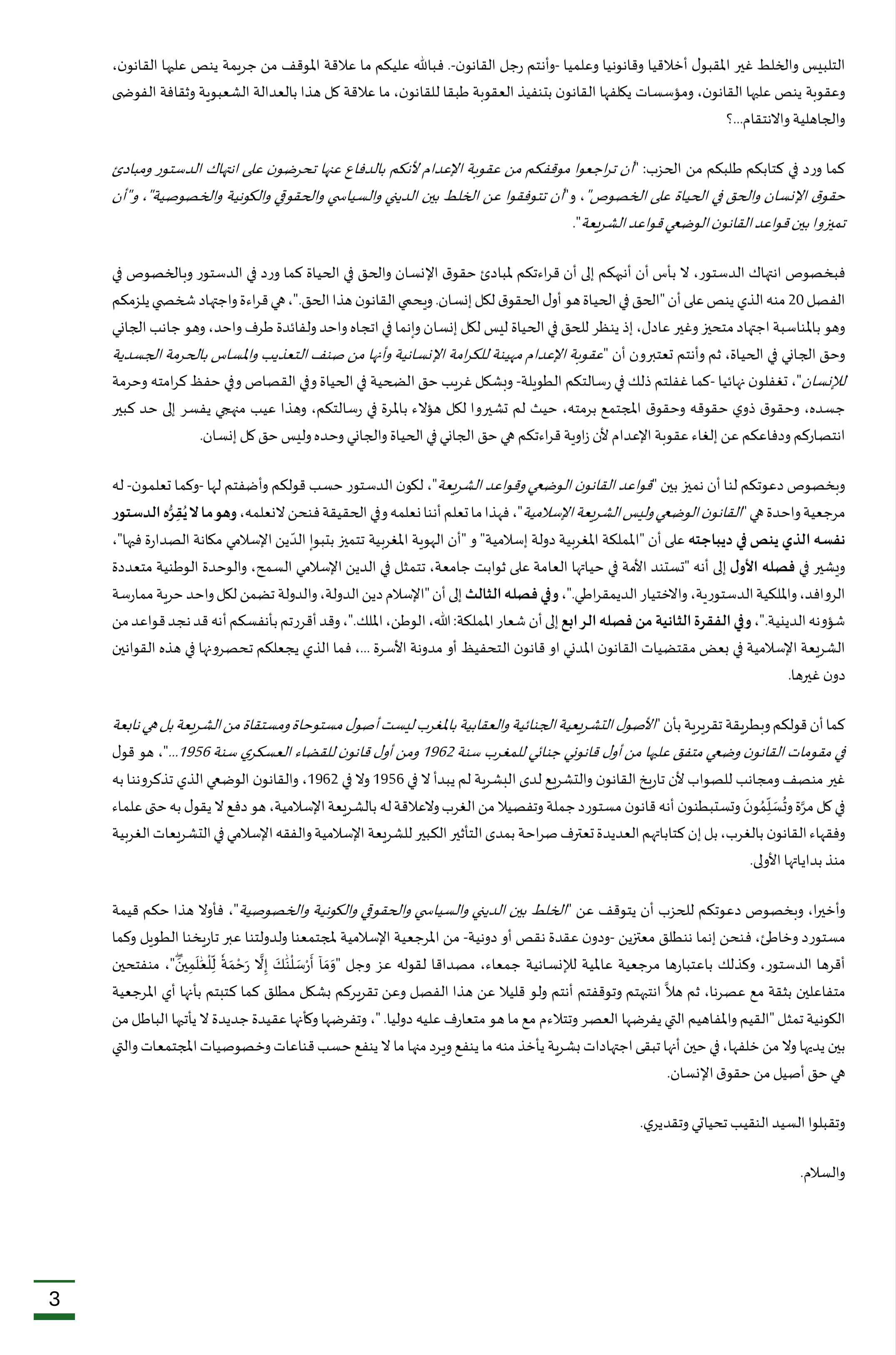 نص رسالة الأزمي إلى النقيب الجامعي حول عقوبة الإعدام