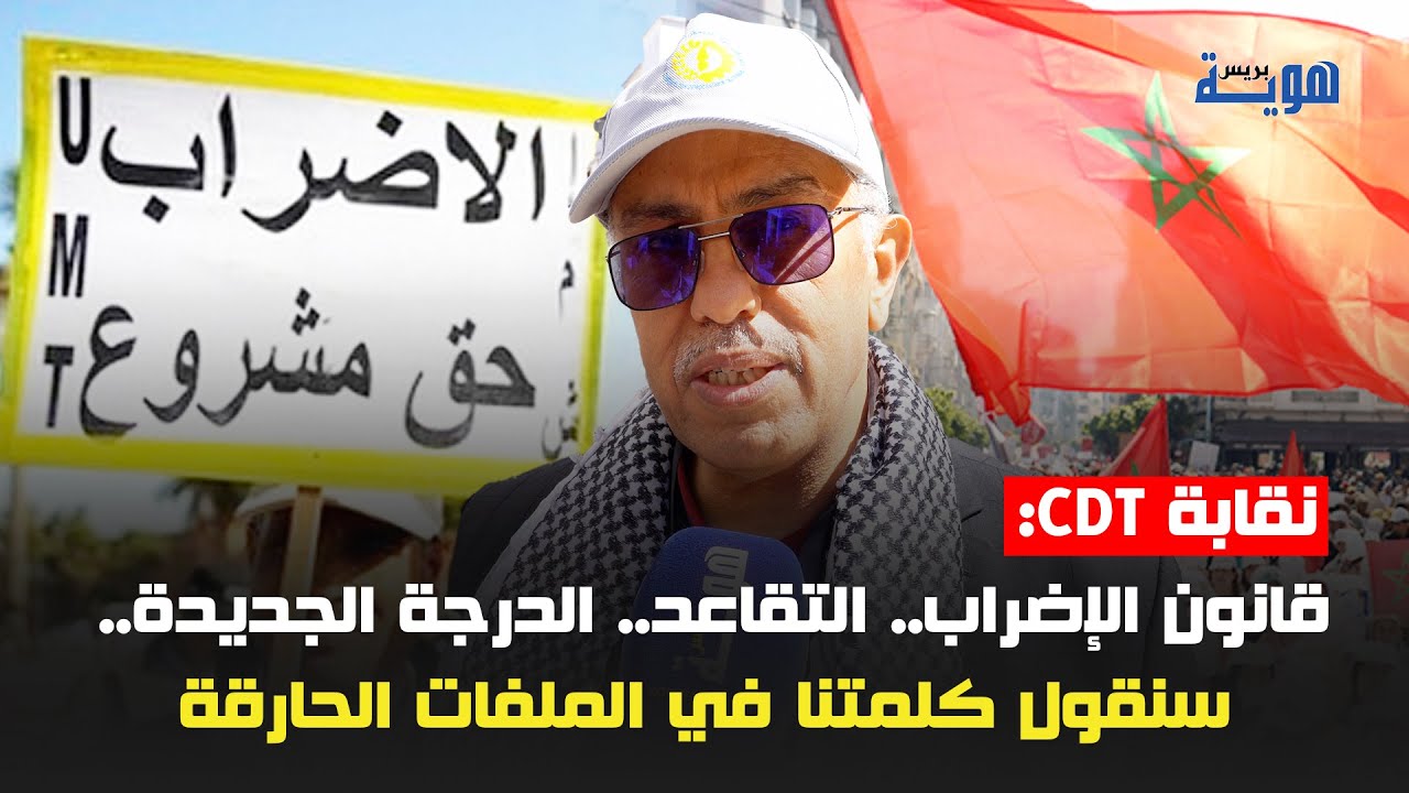 نقابة CDT: قانون الإضراب.. التقاعد.. الدرجة الجديدة.. سنقول كلمتنا في الملفات الحارقة (هوية بريس) 01 مايو 2024 18:58