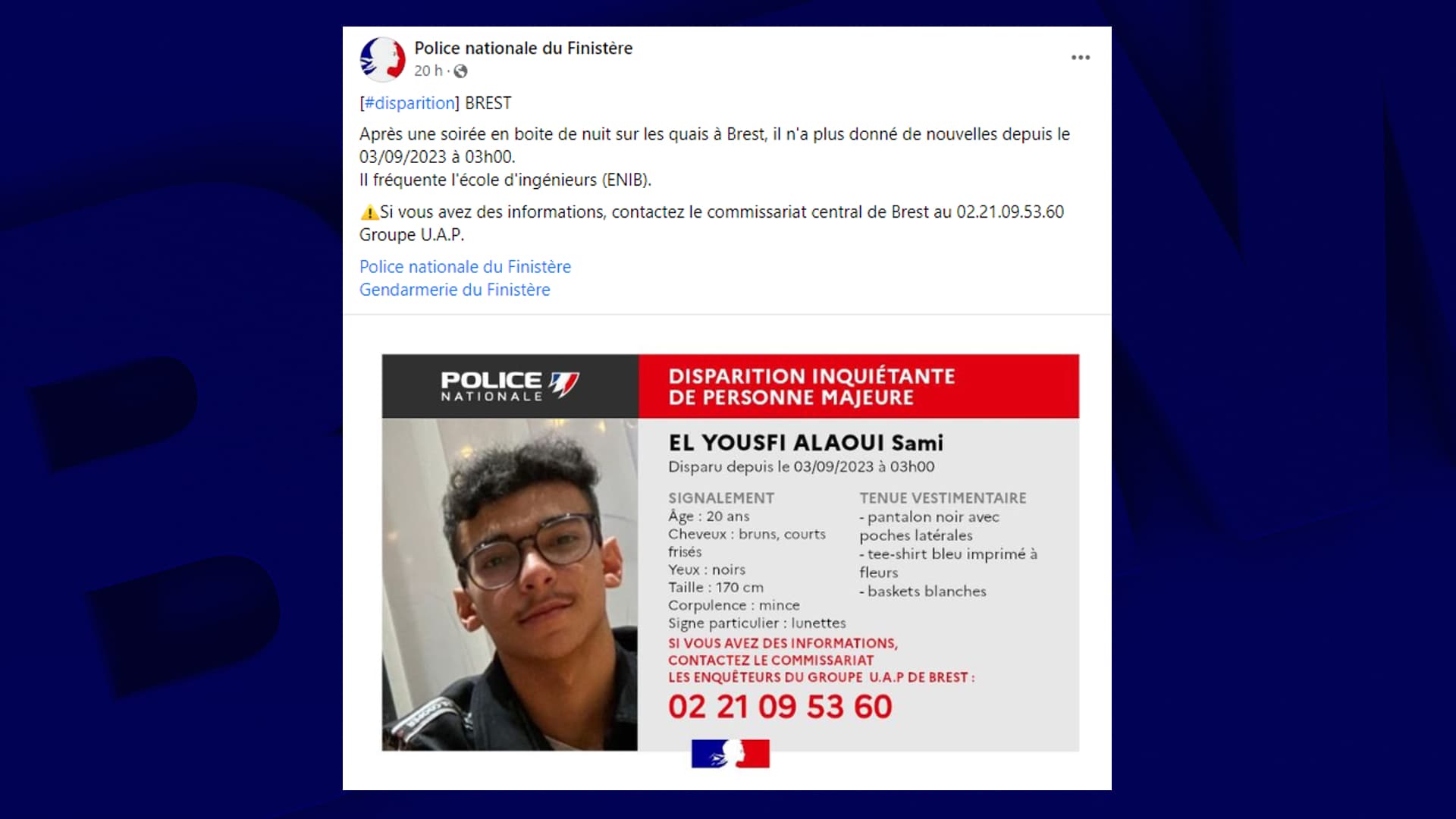 وكان مقربون من سامي قد عملوا، يوم الثلاثاء الماضي، على نشر ملصقات في وسط مدينة بريست قصد المساعدة في العثور عليه.