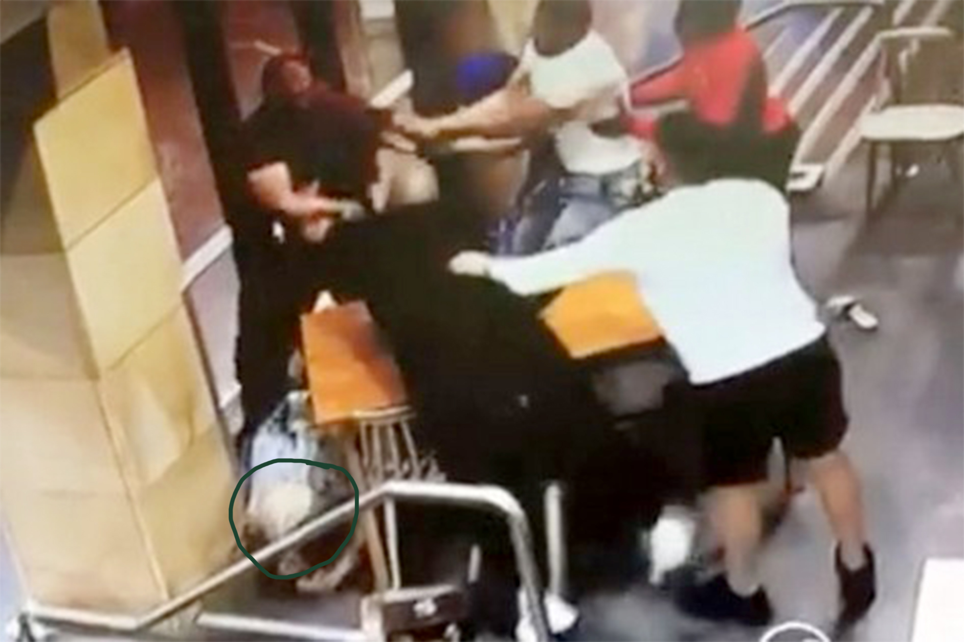بعد أن تحدث معها لفترة وجيزة، لكمها لوزينا عدة مرات وداس على رأسها عندما سقطت على الأرض. وقتها، قفز أصدقاء رنا وآخرون من مقاعدهم لتقييده.