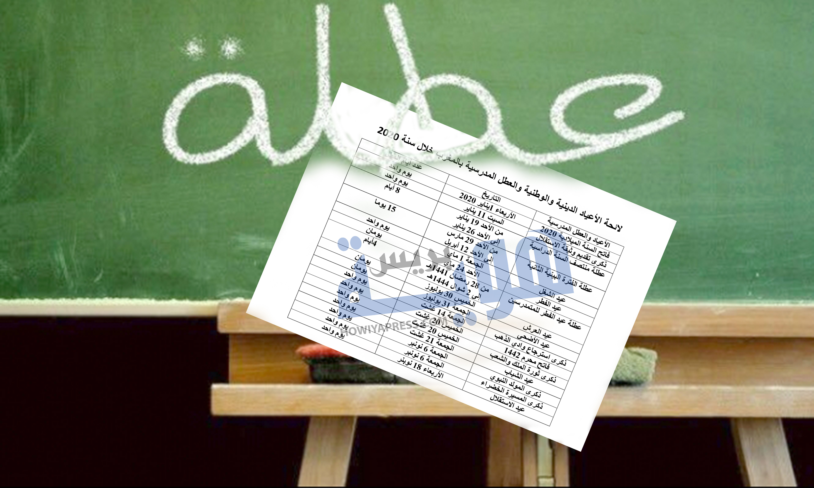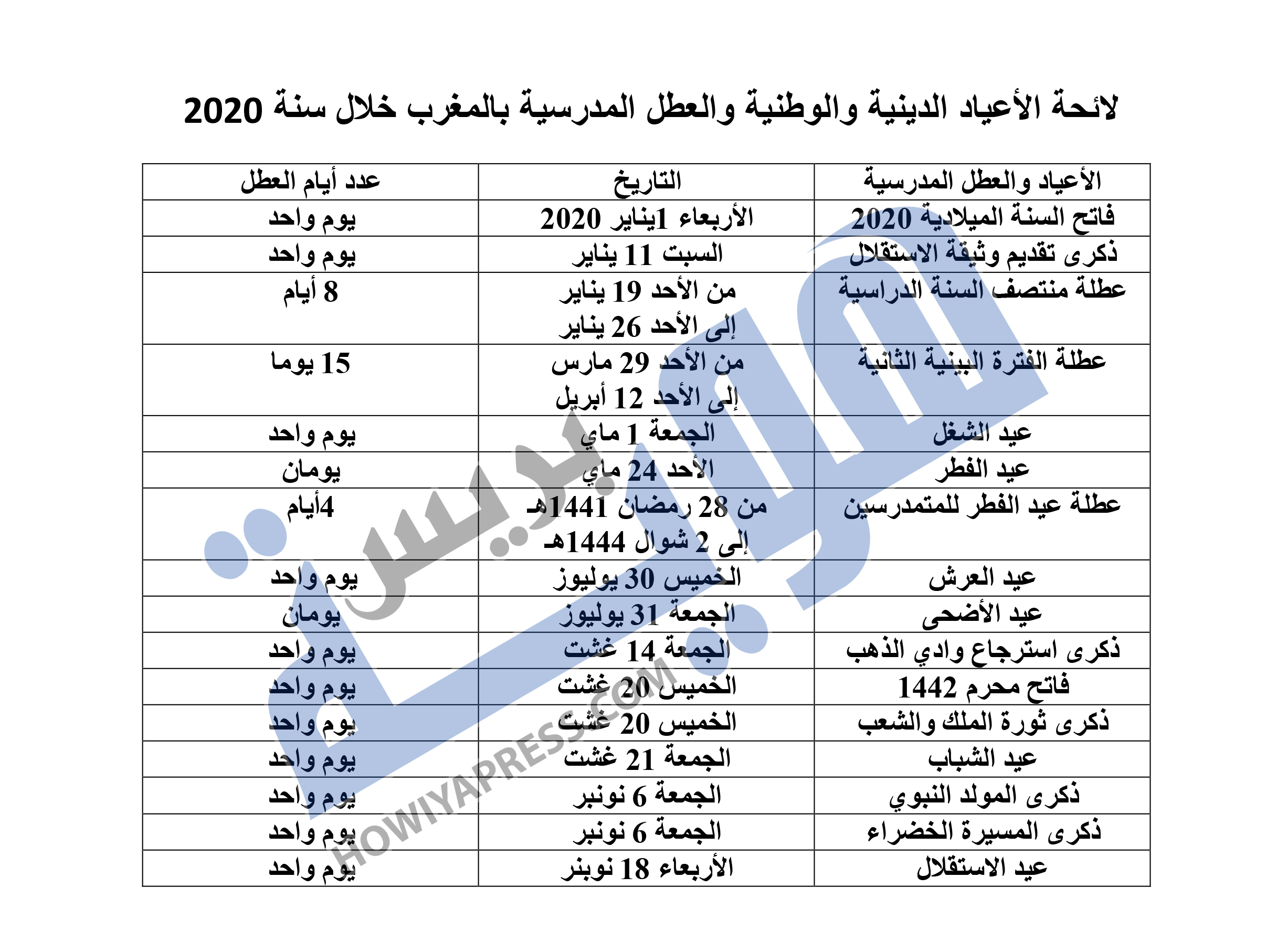 وهذا جدول لكل عطل سنة 2020 الدينية والوطنية والمدرسية التي سيتفيد منها المغاربة في العام الجديد.