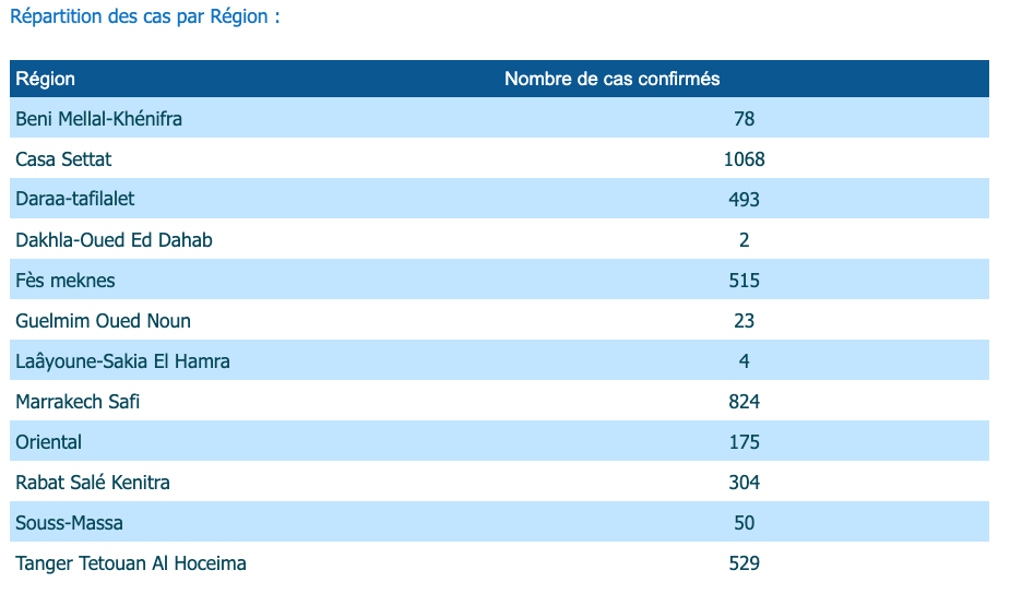 أن جهة الدار البيضاء سطات، في المرتبة الأولى بتسجيلها ل 1068 حالة إصابة.