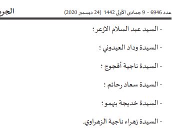 وصدر بالعدد الأخير للجريدة الرسمية، ظهير شريف رقم 1.20.86 يقضي بتعيين 16 رئيسا جديدا للمجالس العلمية المحلية بعدد من الأقاليم، إضافة إلى 22 عضوا جديدا بالمجلس العلمي الأعلى.