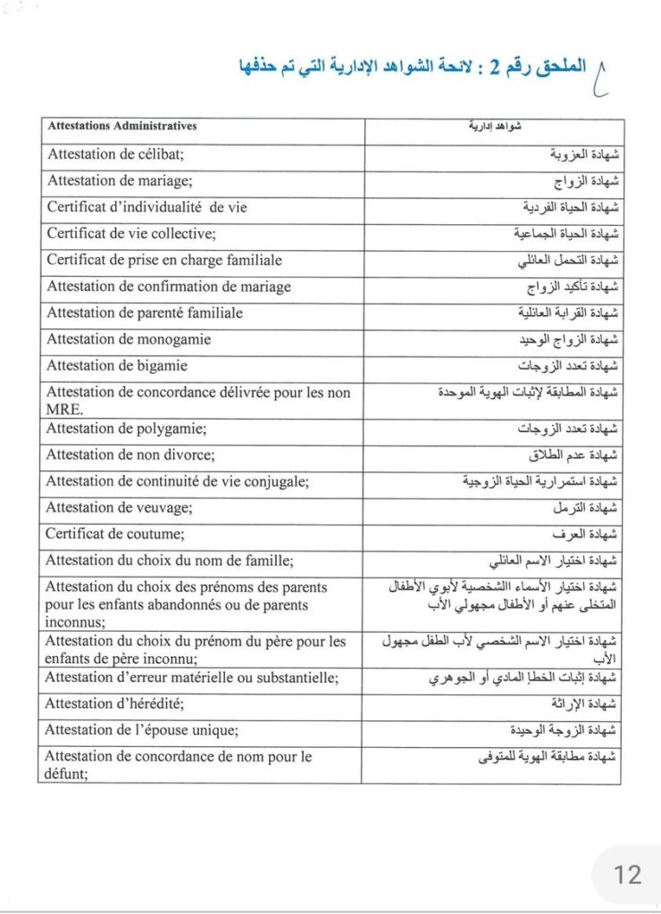 وتماشيا مع مقتضيات هذا القانون المذكور أعلاه، تم حذف لائحة من الشواهد الإدارية من اختصاص ضباط الحالة المدنية، وذلك في إطار سياسة تبسيط مساطر وإجراءات المواطنين واستجابة لأحكام القانون 19-55 المتعلق بتبسيط الإجراءات والمساطر الإدارية، وفق ما تبينه الوثيقة أسفله: