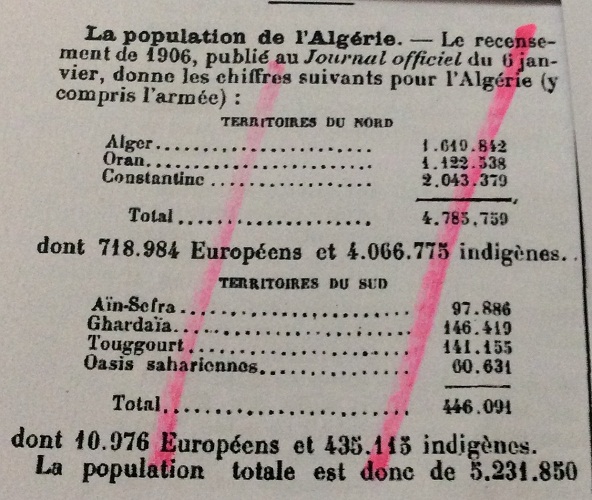 هذه هي الجزائر وهذا عدد سكانها سنة 1906م (وثيقة)