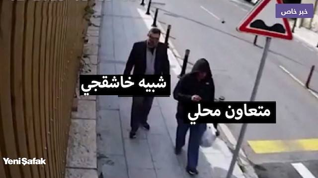 وفي الصورتين اللتين أخذتا من تسجيلات كاميرات المراقبة، يسير الرجل في الشارع إلى جانب عنصر سعودي ارتدى ملابس خاشقجي؛ بهدف الإيحاء بأن الصحفي غادر القنصلية وهو على قيد الحياة.