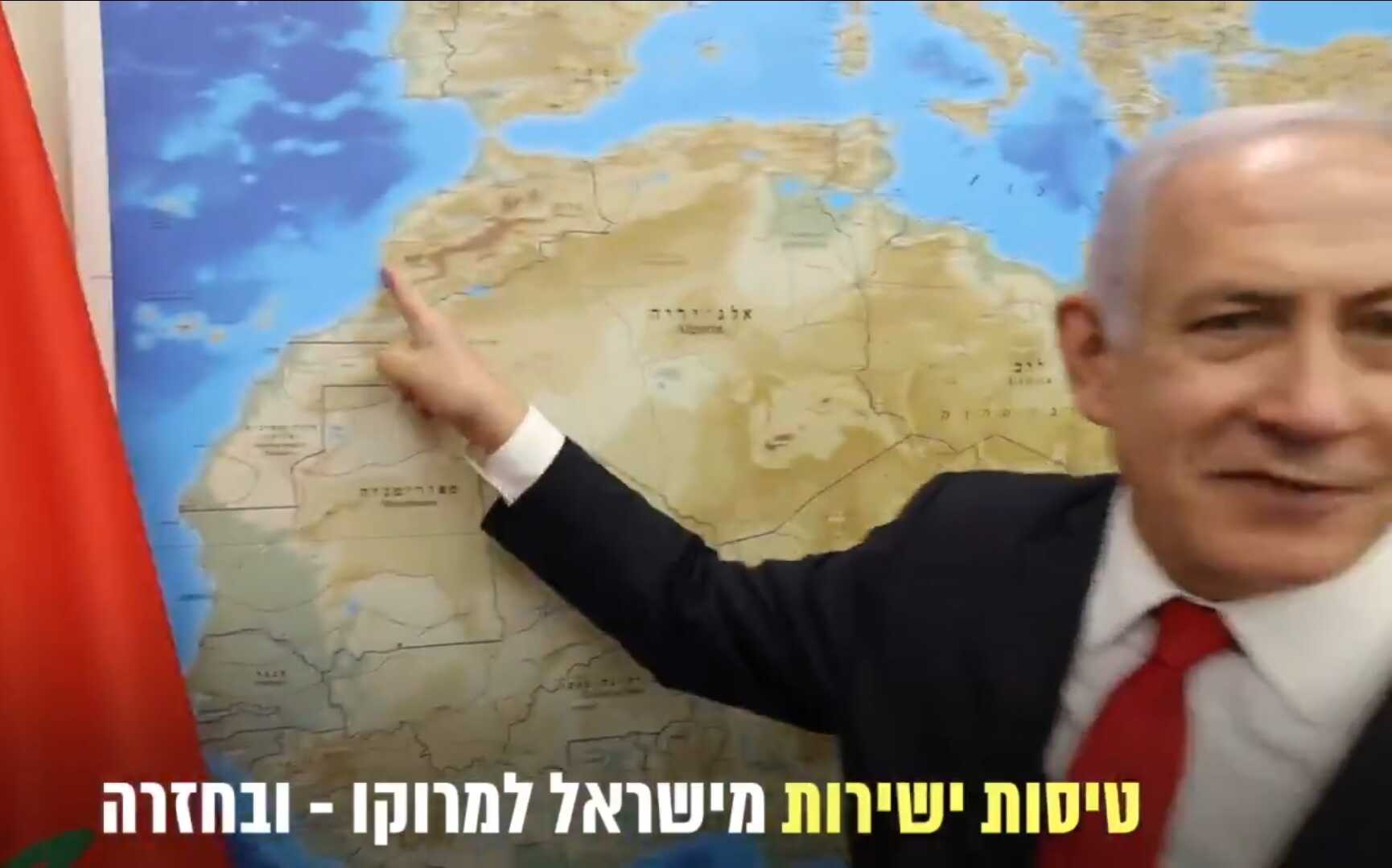 وقد وثق مقطع فيديو من داخل مكتب نتنياهو أنه يوجد على الجدار خلفه خريطة للمغرب مبتور عن أقاليمه الجنوبية.