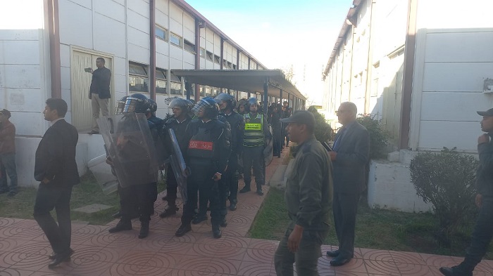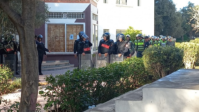وقد عملت هذه القوات على إخراج الطلبة والطالبات بالقوة من المدرج تنفيذا لما قالت عنه السلطات “تعليمات”، وبعد صمود الطلبة وتشبثهم بحقهم التاريخي والقانوني في تنظيم نشاطهم الذي دأبوا عليه على مر تاريخ الجامعة المغربية؛ قابلتهم السلطات بالقوة والعنف والمطاردات داخل ساحات الكلية وإخراجهم خارج أسوار الكلية، ما تسبب في سقوط عدد من الطالبات والطلبة، حالة بعضهن حرجة تستدعي إسعافات طبية.