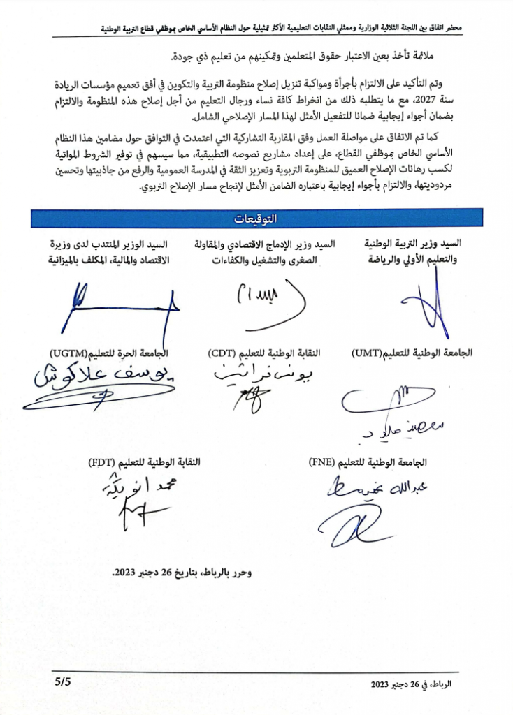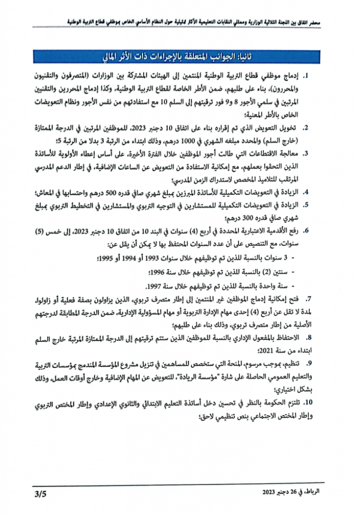باتفاق بعد ادراج التعديلات المرتبطة بالجانب التربوي والمالي لموظفي قطاع التعليم.