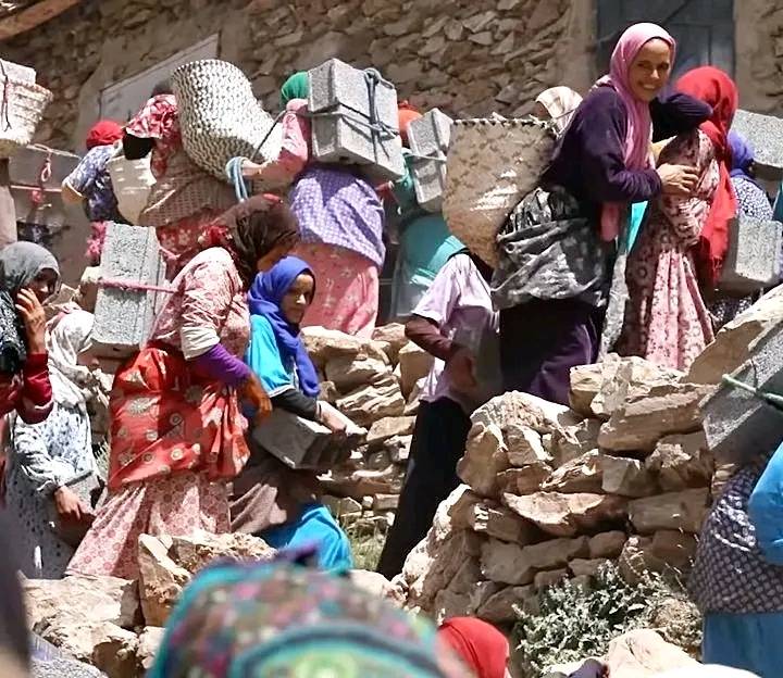 أشادت الهيئة الديمقراطية المغربية لحقوق الإنسان بمقطع فيديو وثق لمشاركة مجموعة من النساء في منطقة نائية في بناء مسجد وذلك بحمل الحجارة “الطوب” فوق ظهورهن لمسافات طويلة.