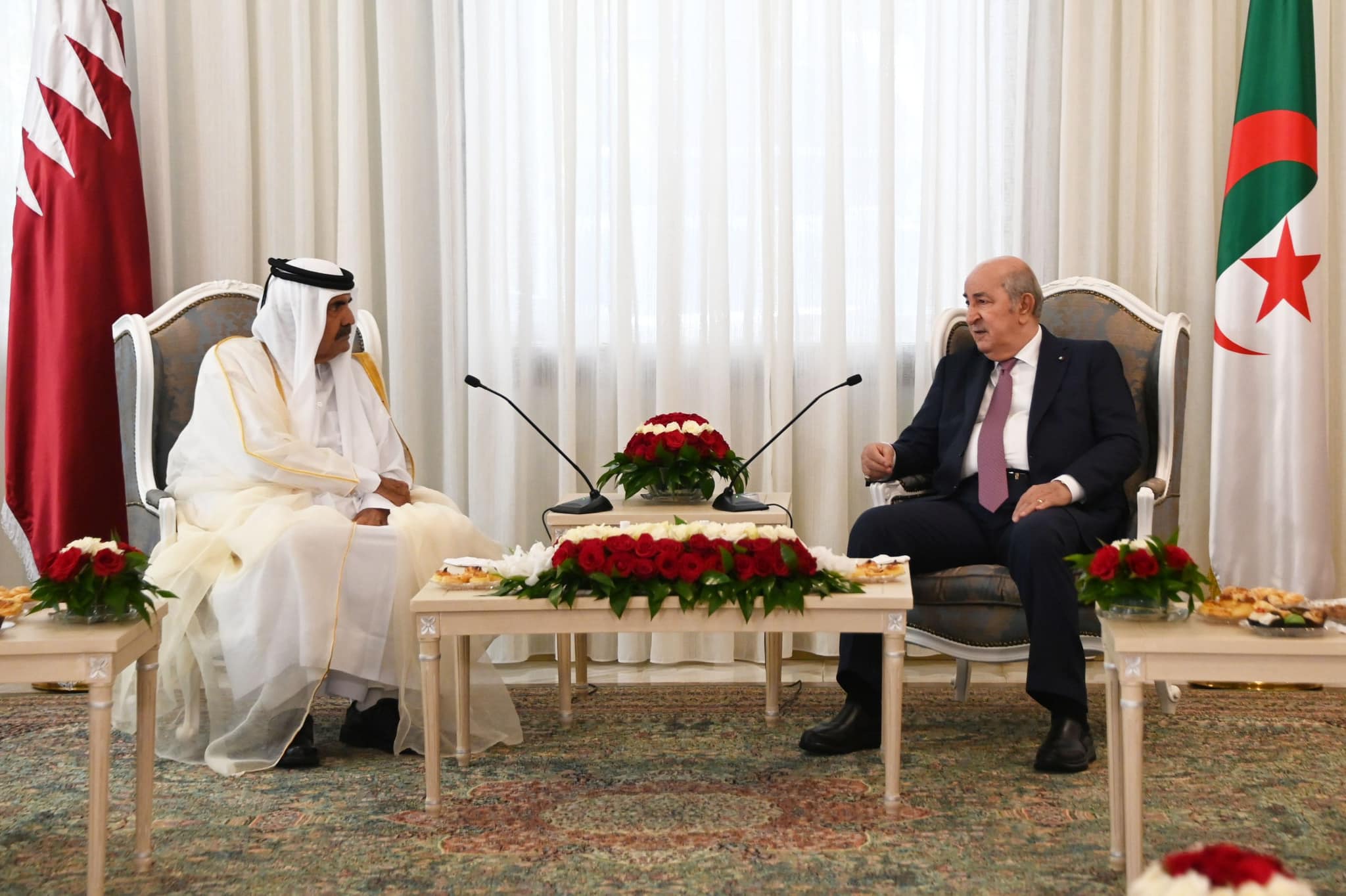 استقبل الرئيس الجزائري عبد المجيد تبون، يوم أمس الإثنين بالجزائر، الشيخ حمد بن خليفة آل ثاني، الأمير الوالد لأمير دولة قطر.