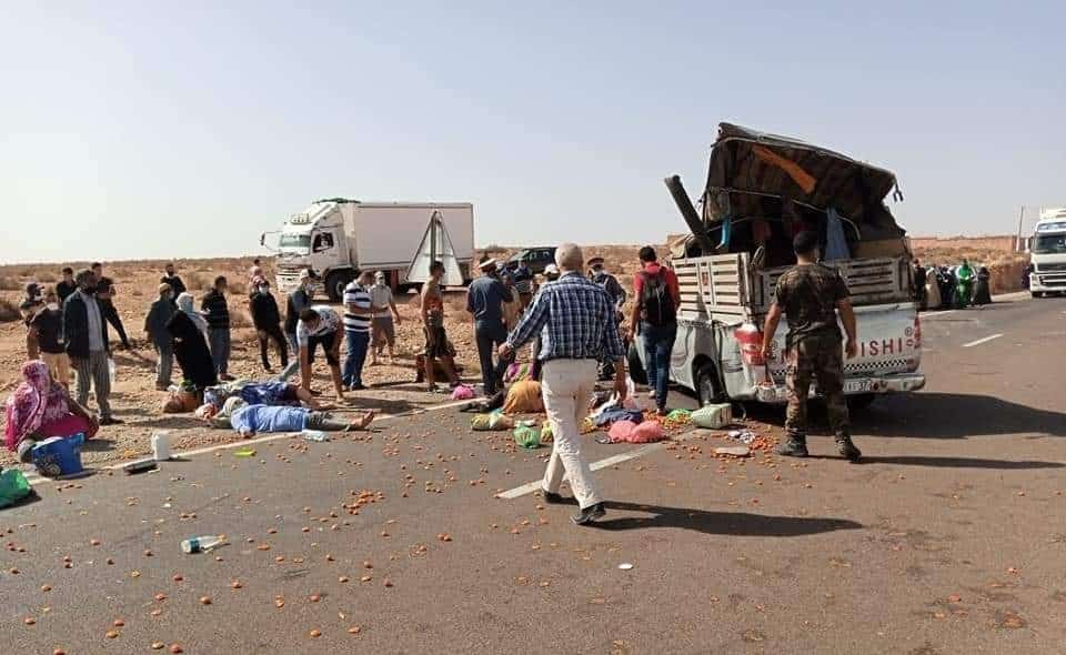 وزادت جريدة “الأهم 24” الإلكترونية أن “المعطيات الأولية المتوفرة، تفيد أن حادثة السير المشار إليها وقعت إثر انقلاب سيارة من نوع “بيكوب” الخاصة بنقل عمال وعاملات زراعيات بالضيعات الفلاحية المنتشرة بالمنطقة”.