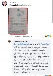 وفي تفاصيل أخرى للواقعة المعروضة على أنظار المحكمة، صرّح والد التلميذة أنه سبق أن قام بإعادة تسجيل ابنته نهاية الموسم الدراسي، دون أن يتلقى أي وصل بالعملية، وحين عاد بداية الموسم الدراسي الحالي تفاجأ برفض إدارة المؤسسة قبول ابنته، مع استعداد المؤسسة لإعادة رسوم ومستحقات التسجيل. ليضطر الأب بعد ذلك، إلى اللجوء للقضاء الاستعجالي الذي انتصر لحق الطفلة تحت طائلة غرامة مالية تقدر بـ500 درهم عن كل يوم تأخير.