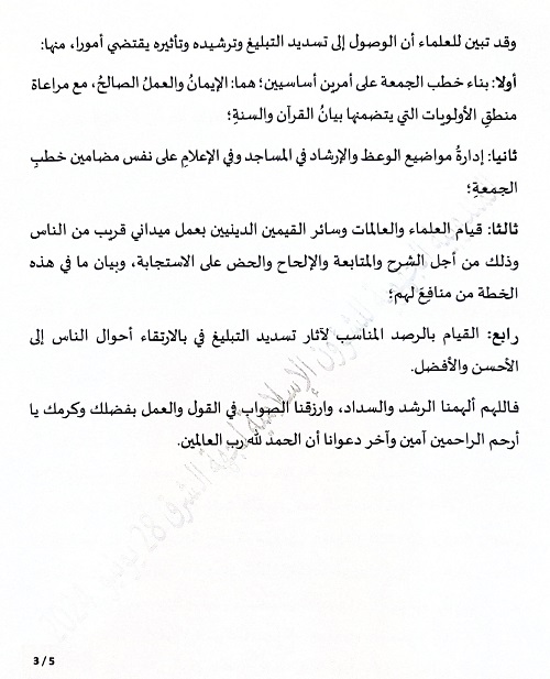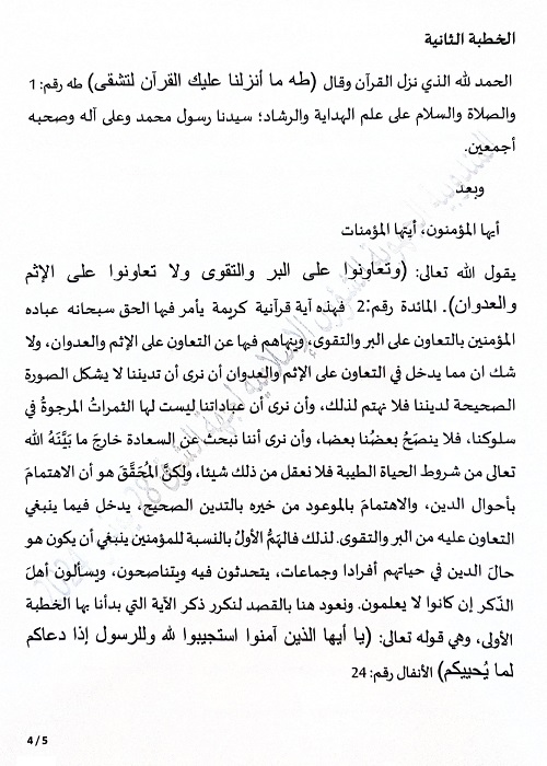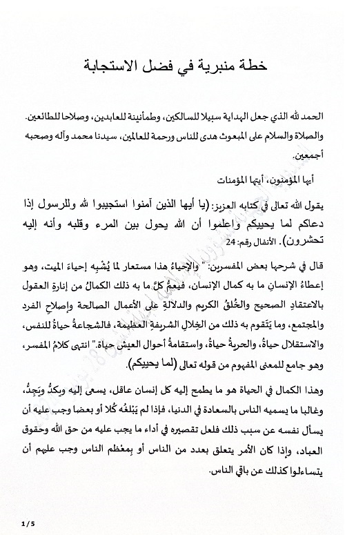 وجعلت الخطبة الأولى التي توصل موقع “هوية بريس” بنسخة منها تحت عنوان “فضل الاستجابة”، وهذا نصها: