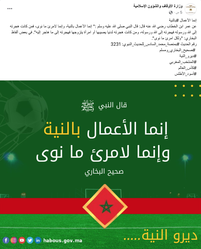 وزارة الأوقاف تتفاعل مع شعار الركراكي “ديرو النية”