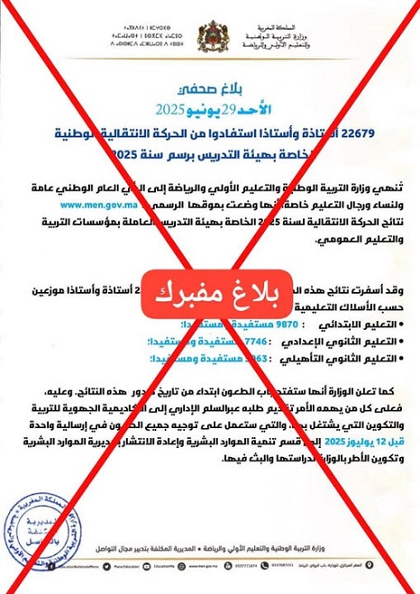 أصدرت وزارة التربية الوطنية والتعليم الأولي والرياضة نتائج الحركة الانتقالية الخاصة بأطر هيئة التدريس و الأطر المزاولة لمهام التدبير المالي والمادي والمحاسباتي لسنة 2025.