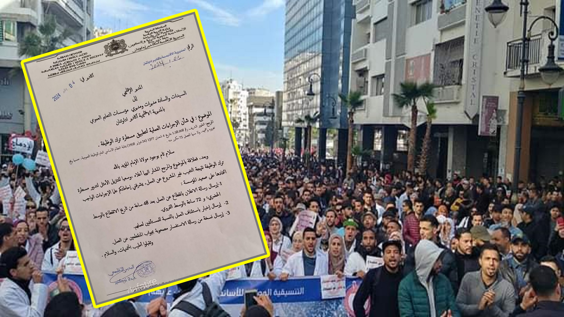 وزارة التربية تشرع في تطبيق مسطرة “ترك الوظيفة” و”الانقطاع عن العمل” بحق الأساتذة المضربين (وثيقة+فيديو)