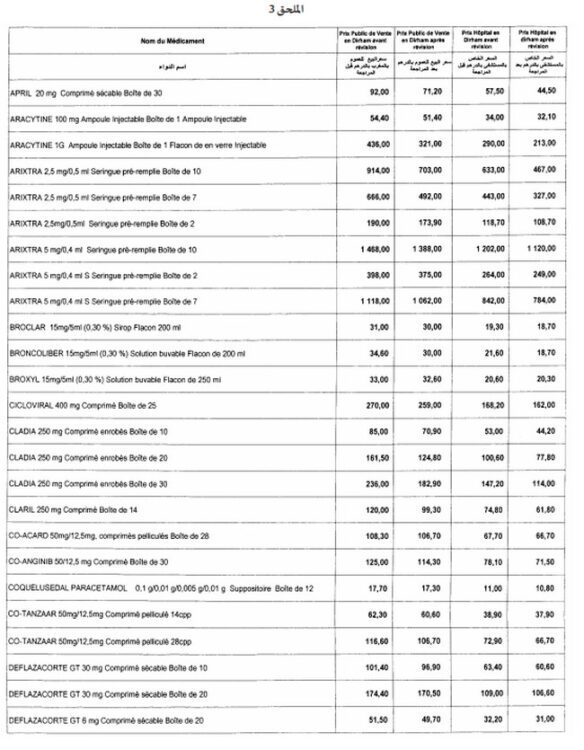 نشر في العدد الأخير للجريدة الرسمية، قرار لوزير الصحة، بمراجعة أسعار البيع للعموم لعدد من الأدوية الأصلية والجنيسة والمماثلة الحيوية المسوقة في المغرب.