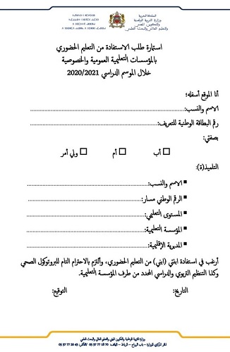 وزير التربية الوطنية تلزم أولياء الأمور الراغبين في التعليم الحضوري بملئ هذه الاستمارة (وثيقة)