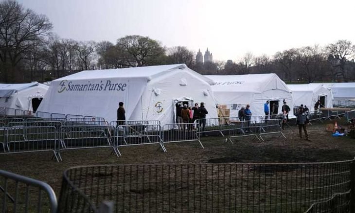 تسارع الحكومة الأمريكية الخطى لبناء مئات المستشفيات المؤقتة بالقرب من المدن الكبرى بعد أن تعرضت منظومة الرعاية الصحية لضغوط تفوق طاقتها بسبب وباء فيروس كورونا.