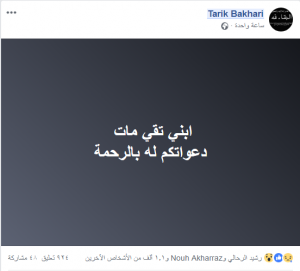 “ابني تقي مات دعواتكم له بالرحمة”.