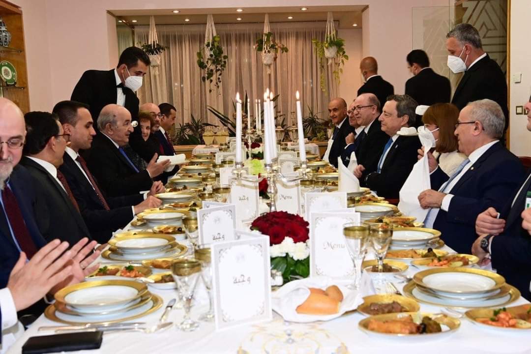 وأظهرت صورة نشرها الصحفي المصطفى العسري، على صفحته ب”فيسبوك”، عبد المجيد تبون وبعض أفراد إدارته يجلسون إلى جانب الرئيس الإيطالي والوفد المرافق له، على مائدة إفطار أقبمت على شرف الأخير.