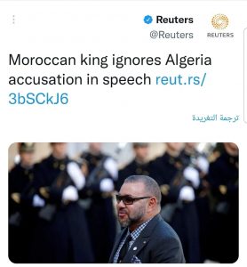 وقالت الوكالة، حسب ما نقله الصحفي مصطفى العسري على صفحته ب”فيسبوك”، أن “الملك محمد السادس يتجاهل اتهامات الجزائر”.