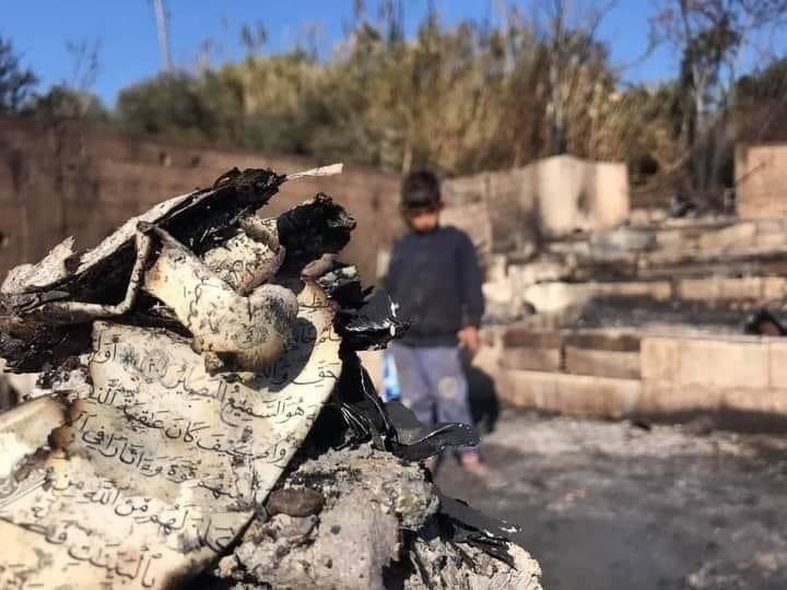 “وهو السميع البصير”.. جزء من آية قرآنية بقي بعد حريق بمخيم الاجئين السوريين