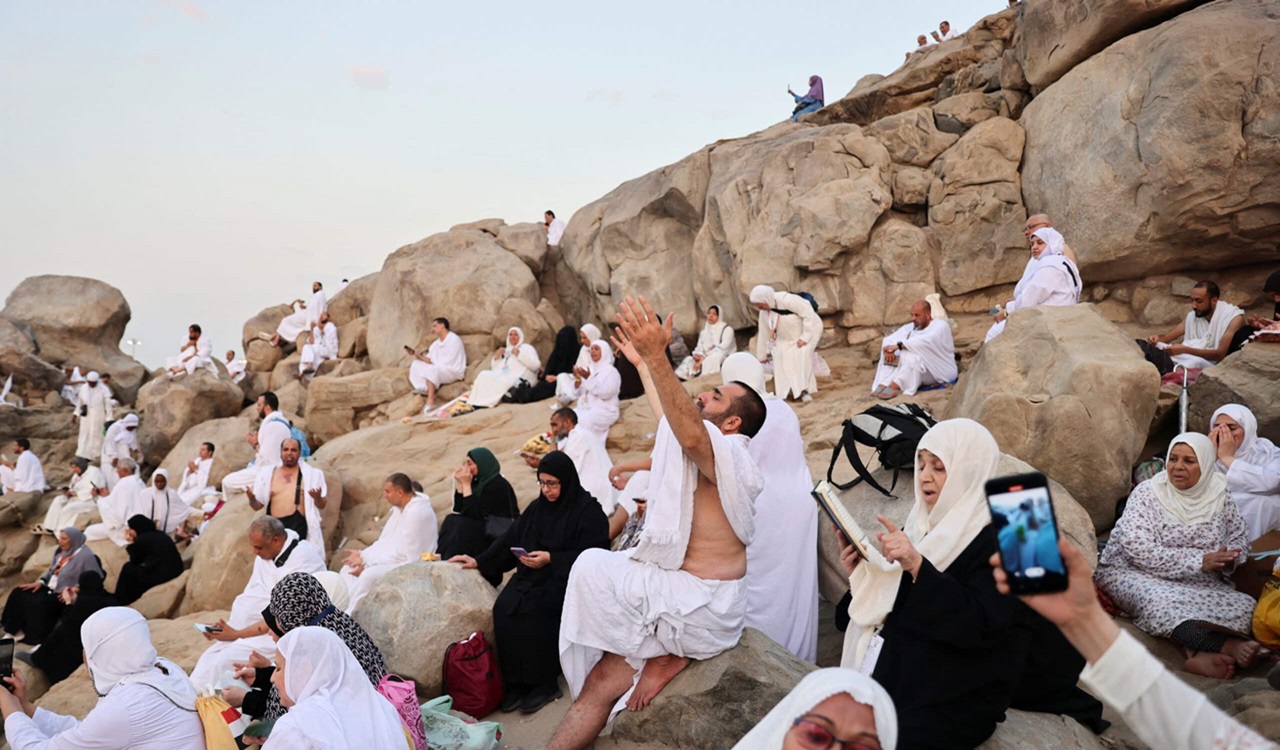 ويتوافد الحجاج في يوم عرفة إلى التلة الشهيرة التي يبلغ ارتفاعها نحو 70 مترًا، إضافة إلى السهول المحيطة بها، حيث يمكثون لساعات طويلة في الدعاء وقراءة القرآن حتى غروب الشمس.