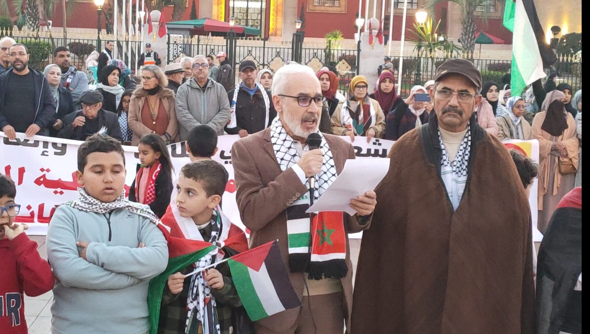 نقف اليوم في سلسلة الوقفات والمسيرات والفعاليات المتواصلة للشعب المغربي لنصرة ودعم الشعب الفلسطيني الصامد تحت آلة البطش الإرهابية لعصابة الاحتلال الصهيوني منذ أكثر من 75 عاما الذي هو عمر نكبة فلسطين، وبعد أزيد من 75 يوما منذ السابع من أكتوبر 2023 تاريخ معركة طوفان الأقصى المباركة، وهي الأيام التي عرفت أشد حرب في تاريخ العدوان الإرهابي المتوحش للكيان العنصري المصر على الإبادة الجماعية للشعب الفلسطيني ولا سيما من الأطفال والنساء حيث تجاوز عدد الشهداء منذ بدء العدوان 20 ألف شهيد والجرحى أزيد من 52 ألفا إضافة إلى العديد من المفقودين.