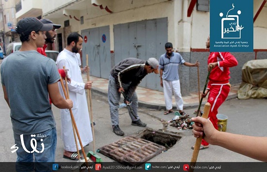 “نقاء” هو اسم الحملة التي نظمها مجموعة من شباب حي سيدي موسى بسلا؛ حيث قام شباب “جمعية أيادي الخير للبيئة والتنمية” في مبادرة فريدة من نوعها بالحي من خلال إطلاق دعوة على مواقع التواصل الاجتماعي بغرض حث الشباب على تنظيف وتطهير الأزقة والشوارع من مخلفات الأضاحي.