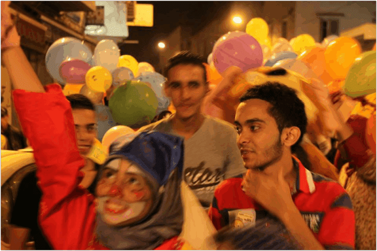 كما رددوا شعارات تنادي بالابتسامة من قبيل: “وشوف وسمع الابتسامة كتنفع”، و”فين هي فين هي الابتسامة هاهي”، وهي الفكرة ذاتها التي نفذها مجموعة من شباب العاصمة الإدارية الذين نسقوا لنشاطهم عبر موقع التواصل الاجتماعي فايسبوك.
